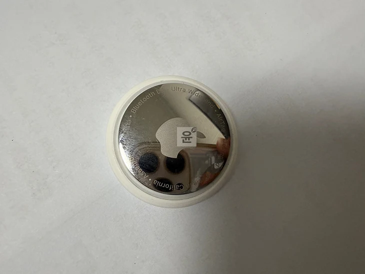 1. 먼저 에어태그 애플 로고가 있는 유광 스테인리스 커버를 위로 향하게 두고 커버를 손가락으로 꾹 누른 상태에서 왼쪽으로 돌립니다.