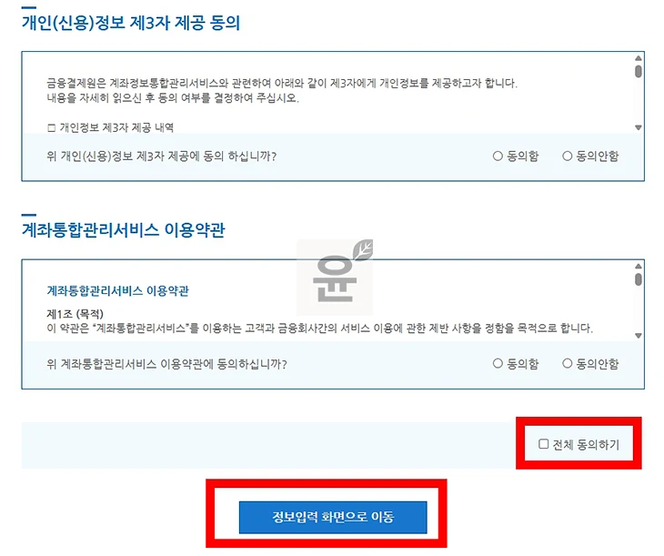 1. 어카운트인포서비스 계좌정보통합관리서비스 홈페이지에 접속합니다.