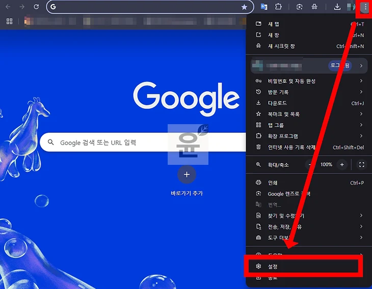 1. PC에서 크롬을 실행한 뒤에 오른쪽 위에 보이는 점 3개((⋮) 아이콘을 클릭합니다.