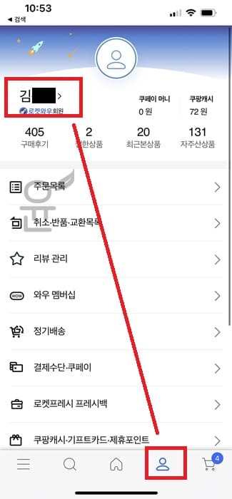 1. 쿠팡앱 실행 > 로그인 > 마이쿠팡