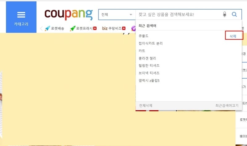 쿠팡 검색 기록 삭제하는 방법