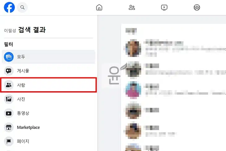 검색 결과 화면에서 왼쪽 필터 항목 아래에 사람을 클릭합니다.