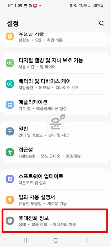 2. 휴대전화 정보에서 소프트웨어 정보 메뉴를 택합니다.