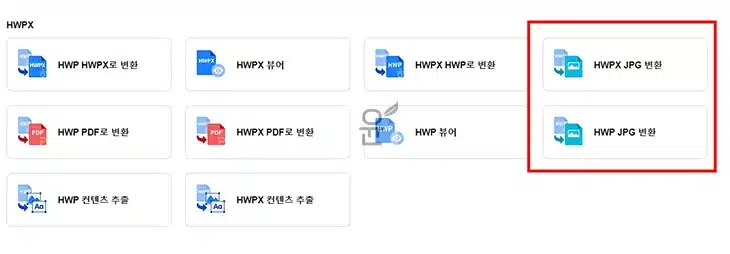 폴라리스 오피스 툴에서 HWPX -> JPG, HWP -> JPG 변환을 클릭합니다.