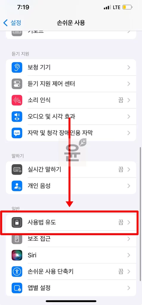 여기서 잠깐 사용법 유도에 대해서 알아보면 그냥 쉽게 말해서 단일 앱을 집중적으로 사용할 수 있게 도와주는 기능이라고 보면 되겠습니다. 주로 자녀에게 핸드폰을 주면서 특정 앱만 하도록 하거나 다른 앱 방해없이 특정 앱만 집중할 때 사용이 됩니다.