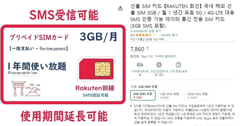 일본 일회용 가상 전화번호로 문자를 받는 사이트들을 많이 이용을 해봤는데 잘 안되어서 한국에서 일본 문자인증이 되는 라쿠텐 유심을 구매했습니다.