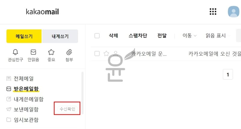 1. PC 카카오메일 이동하기 > 수신확인 버튼 클릭