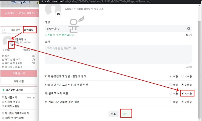 네이버 카페에서 내 블로그 안보이게 설정하는 방법