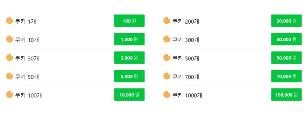 쿠키를 직접 충전할 수도 있지만 남은 쿠키가 적거나 매월 원하는 날짜에 충전해주는 기능을 통해서 추가로 보너스쿠키를 받을수가 있습니다.