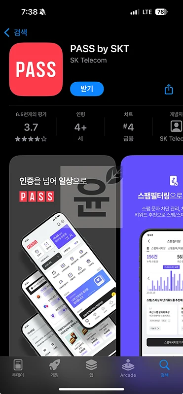 앱이 오래되었다면 시스템이 맞지 않아 인증이 실패할 수가 있습니다. 이럴 때는 플레이스토어로 앱스토어에서 PASS로 검색 후 업데이트를 해주세요. PASS 앱을 찾을 때는 LG U+, KT, SKT 등 본인 통신사에 해당되는 앱을 설치해야 합니다.