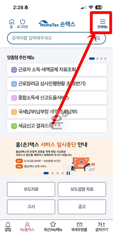 4. 하단에 MY홈택스를 클릭합니다.