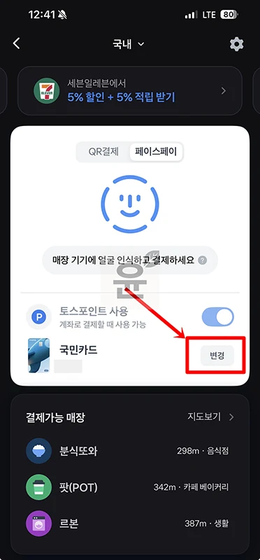 토스 페이스페이 결제수단 변경 방법