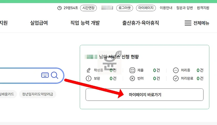 2. 로그인 후 마이페이지 바로가기를 클릭합니다.